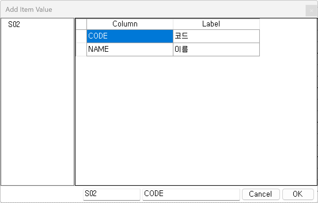 Ex) Dataset : S01 Column : LIST ⇒ 컴포넌트 ID : S01_LIST - 콤보박스 Dataset ▶